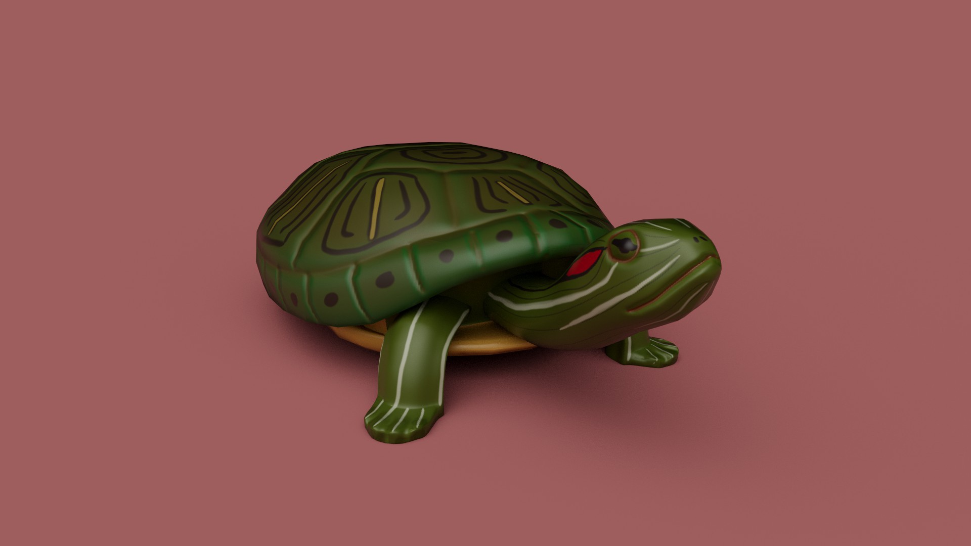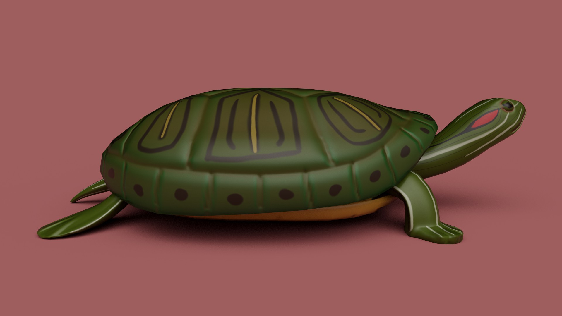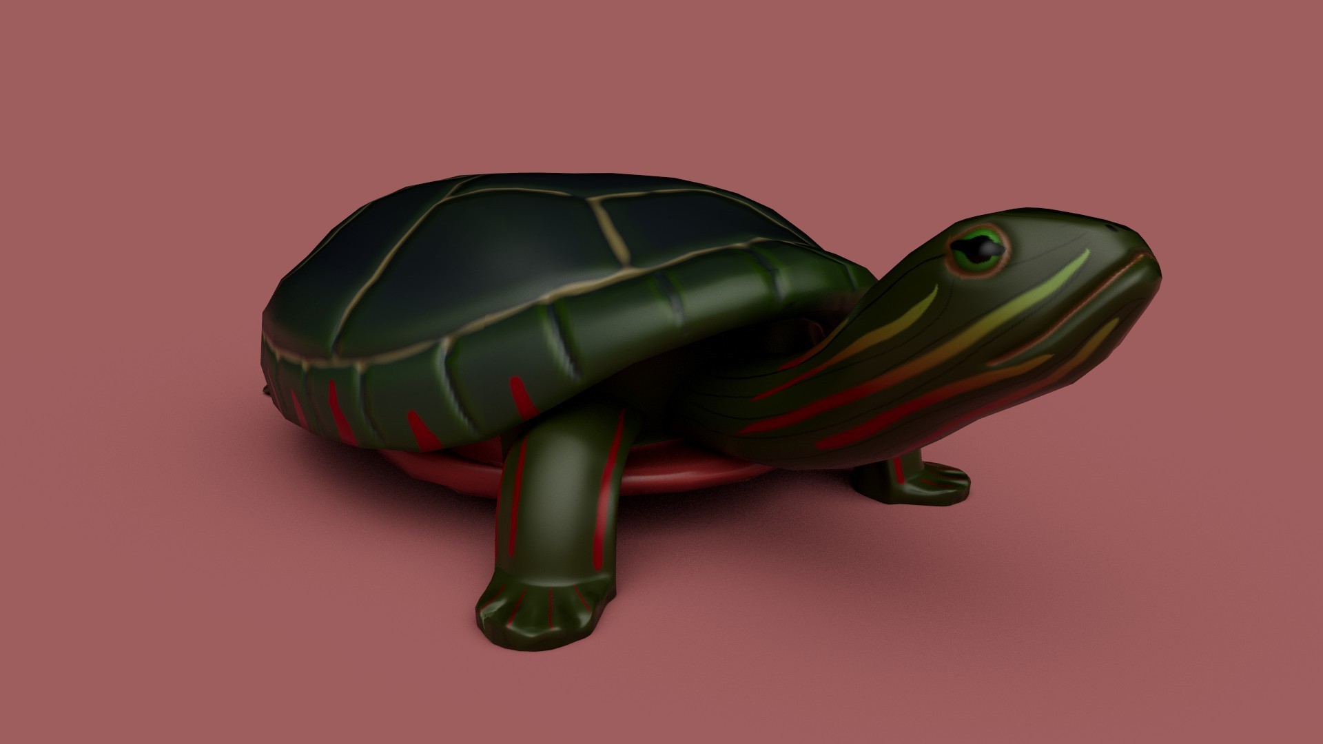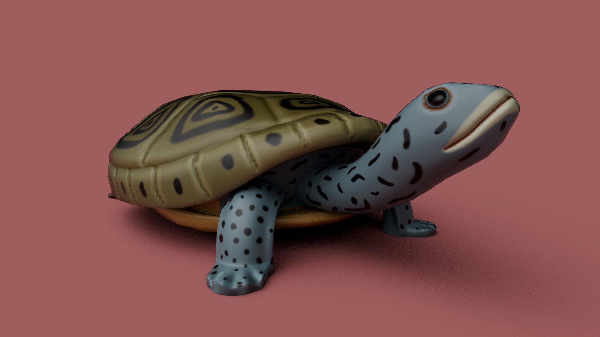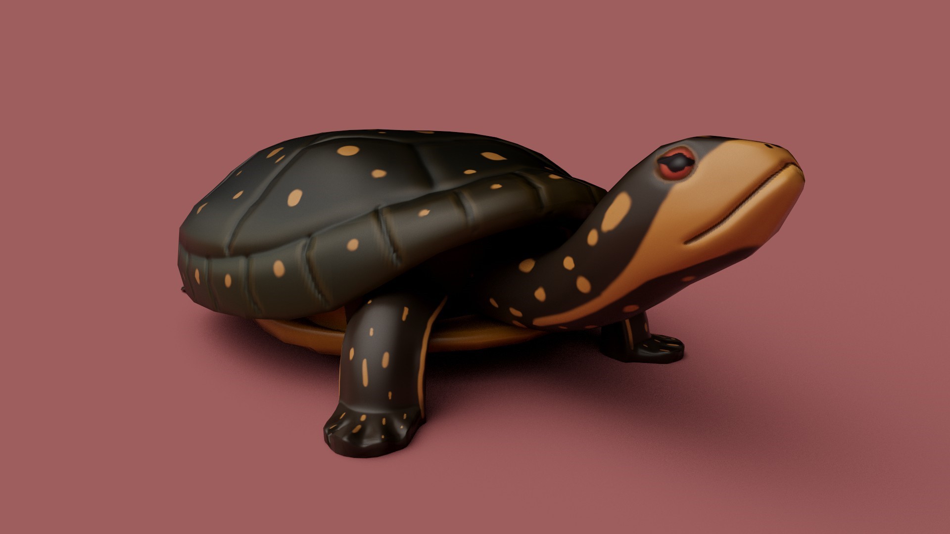 I made this stylized model of a turtle for my Turtle Time Lake environment. I created 4 different textures to depict different species of turtles such as the common Red-eared Slider, Painted Turtle, Spotted Turtle, and the Diamondback Terrapin.